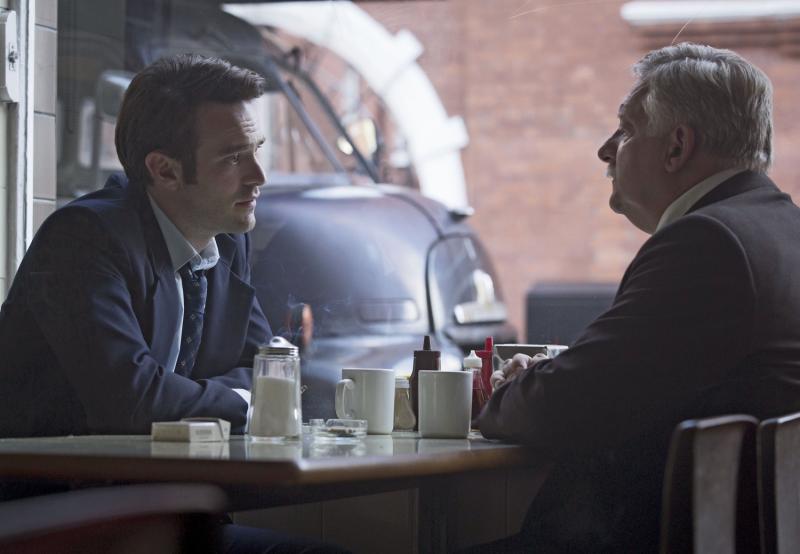 Interestingly enough, linking it with the National Theatre 50th anniversary is that one of the pieces is a bit from Copenhagen, Michael Frayn’s play about walking across Germany just after the war. Literally days after the war, and the heartbreak of this German physicist walking through a shattered civilisation. That idea threads through a lot of Frayn's work and through all of le Carré's George Smiley books, and it’s in Legacy as well I think. It’s not specifically about Germany, but it was set in a period where we were still - and we still are, I suppose - absorbing the implications of this collapsed civilisation, and a lot of people were traumatised obviously. People who love German culture. Richard Strauss, for instance, writing his stuff in his Bavarian mansion. I find that unbearably moving. Because Smiley is a German expert, you forget that from the various film versions, but German literature is his speciality. When I was doing the sacred music and symphony series for BBC Four, a lot of my time was spent in the former East Germany, sitting in Weimar or Leipzig or Wittenberg and thinking “this is an absolute cradle of Western European civilisation.” We in this country have largely wiped that idea of Germany away now. (Pictured below, Simon Russell Beale as Hookey with Charlie Cox as Charles Thoroughgood)