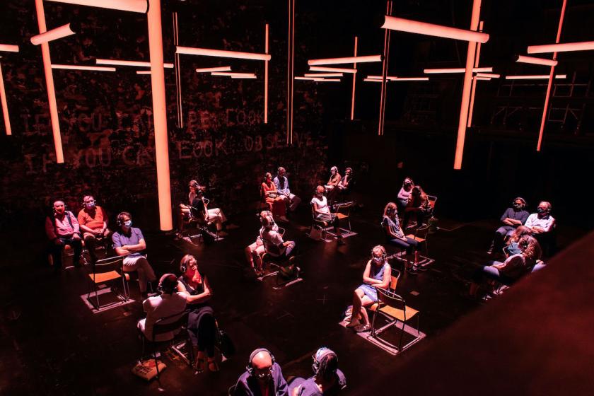 Wowee! Twenty weeks after the last time I set foot in a theatre, I was able to visit a venue once more. Hello again Donmar! It’s great to see you again. Not for a show featuring live performers, who are currently banned, but for a theatre experience in the guise of an art installation, which is allowed. Not only was there a distinct frisson to this experience, but the event itself – a sound version of Portuguese Nobel laureate José Saramago’s 1995 novel Blindness – was superbly accomplished, written by master penman Simon Stephens and featuring the recorded voice of Juliet Stevenson.