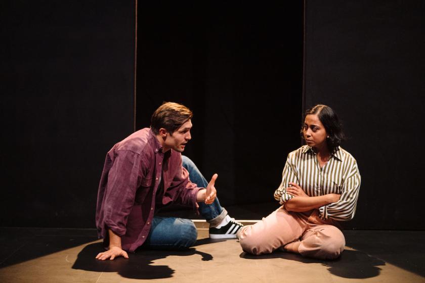 Yet despite the unconvincing plotting, the production, directed by Daniel Raggett and designed by Anna Reid with Paul Arditti’s gripping soundscape, does have an impact. The staging is vividly abstract, with a sinister pit and a runway strip that acts also as the interior of the plane and a metaphor for PTSD taking off. And what a cast! Ted Lasso’s Phil Dunster and Wicked Little Letters’ Anjana Vasan have great onstage chemistry, and the fractured quality of the story’s construction means that you don’t notice the rapidity of the shifts in their characters’ psychology. They are well supported by Craige Els (pictured above), who plays several roles. But in the end Brace Brace is just a work in progress.