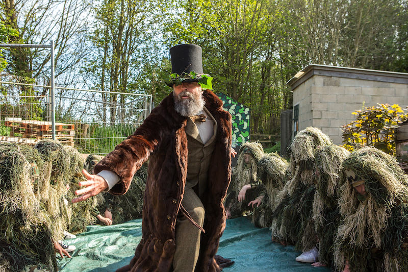 It would have been so easy to have actors pop out from potting sheds spouting chunks of Shakespeare. What Rees has opted for instead – a mix of community volunteers and knitted dolls – is no doubt cheaper, but feels richer. Hollingbury Park Bowls Club meet us at the start, shuffling out from the trees to stand in for the moving forest in Macbeth. Young members of The Theatre Workshop play a chorus of fairies in flailing camouflage gear. Cons and Nikes peek out beneath as they rustle past us on the bluebell path toward the allotments.