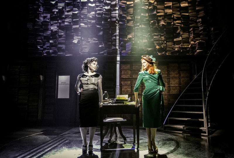 The set-up is ingenious. Stine (Hadley Fraser), a novelist, has been offered his big break: the chance to adapt one of his books for the cinema. But there’s a snag, in the shape of Buddy Fidler, a vulgarian director-producer with scant respect for the written word and no qualms about bastardising Stine’s cherished script. As he struggles to please Buddy while wrestling with his own integrity – and with the disapproval of his whip-smart, editor wife Gabby (Rosalie Craig) – Stine’s own life begins to fuse with that of his literary creation, Stone (Tam Mutu), a world-weary private eye. A LaLaland starlet becomes, in Stine’s imagination, a platinum-blonde good girl gone bad, Buddy’s actress wife a smouldering femme fatale. And Stine’s troubled marriage is mirrored in the doomed romance between Stone and Bobbi, a fame-hungry torch singer (pictured below, Rebecca Trehearn and Rosalie Craig).