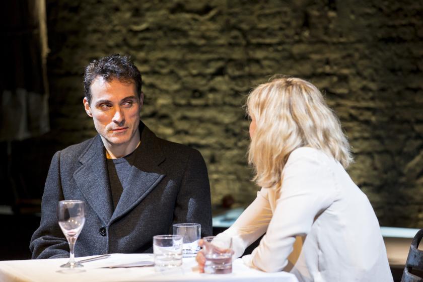 At first, I thought that David Leveaux’s revival was miscast. Compared to the first production, Rufus Sewell’s Larry is too subtle to be convincing as the caveman that the role demands; Rachel Redford’s Alice is more comfortable being vulnerable than being enraged; while Nancy Carroll’s Anna lacks sensuality and Oliver Chris’s Dan is not reserved enough. Somehow the chemistry felt all wrong. But, thank goodness, things warmed up in the second half and the set pieces – in the strip club (pictured below), in Larry’s office and the “mercy fuck” scene – do catch fire.