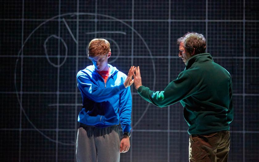 To a degree, that’s easier in a standard theatre configuration because the action is framed for a single point-of-view. Where formerly the floor was used to display Finn Ross’s video and Paule Constable’s light patternings reflecting Christopher’s state of mind, these elements are now still more arresting spread across the back and side walls of Bunny Christie’s graph-paper set.