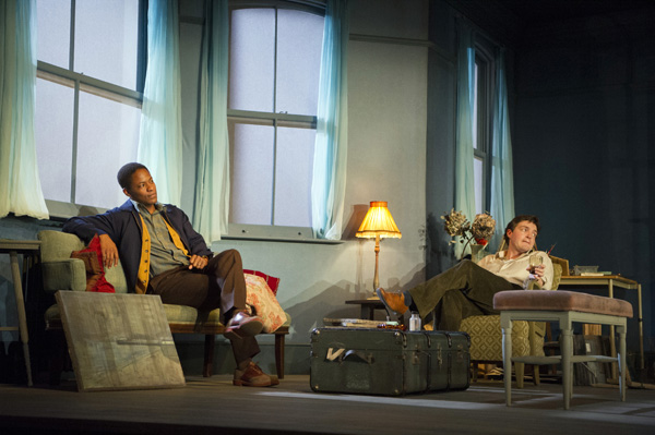McCrory is such a star that the actors playing Freddie (Tom Burke) and Collyer (Peter Sullivan) swing around her, while both Mrs Eldon (Marion Bailey) and Mr Miller (Nick Fletcher) seem under-characterised. At his best, Burke (pictured above right with Adetomiwa Edun’s Jackie) is convincingly frustrated. However, the Welches (Hubert Burton and Yolanda Kettle) are more millennial than mid-century, he public school, she visibly pregnant. Too often, on the press night, the cast attracts mocking laughter rather than audience sympathy. And the final visual metaphor of a fried egg as a symbol of emotional survival is both powerful and, frankly, a bit bathetic.