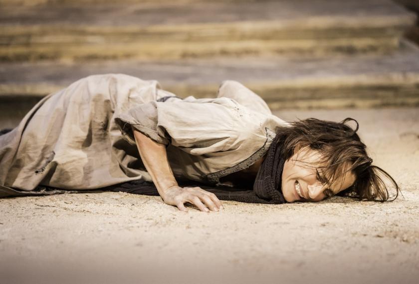 We’re still perfectly aware that she’s been through the mill. While grieving for Agamemnon, she’s forced to waste away as a virtual prisoner in the household of his murderers, Clytemnestra and her lover Aegisthus. At first sight we get the Electra we expect, she who spills “a barren spinster’s tears.” Scott Thomas nails the image of a woman in perpetual mourning: gaunt, eyes sunken, her dress as tattered and grim as you’d expect when its wearer continually writhes in the dirt.