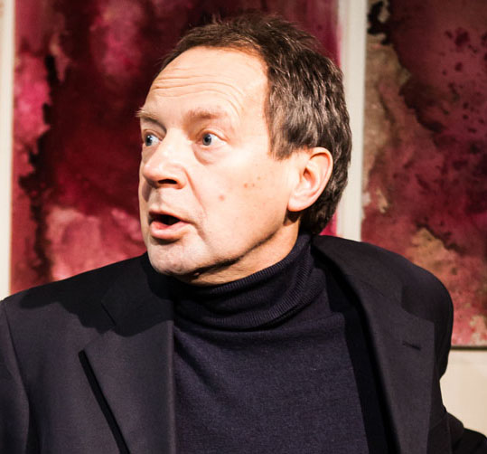 His characters, whose lives interlock, search for a way to happiness but usually find only self-disgust. Maggie, claiming to be 16 but probably younger, seduces Behrooz (Moncef Mansur) on the very spot which she reckons is still warm from Wells’ Martian landing. He does not want to admit to himself that her youth is what attracts him and is, to begin with, unforgiving of John who, when they were friends, looked at child porn sites on his – Behrooz’s – computer “for research”. John (Michael Shefford, pictured above with Cosima Shaw), now proudly brandishing his wife’s baby-scan, first wants to hide his previous behaviour and then confess it, while also trying it on with Maggie’s sexy mother, Corinne.