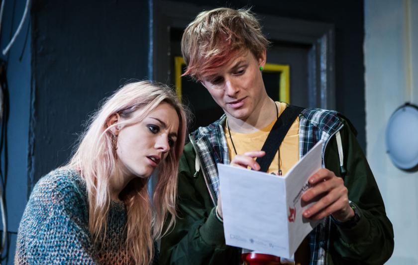 The embarrassing sex scene is deliciously funny with Michael Kirk (pictured left) as the erstwhile “astronaut” gamely stripping to baggy boxers and hoping for what adventurous Corinne (Cosima Shaw) dismisses as “vanilla”. There’s comedy too in nerdy Kiph’s efforts to be cool enough to win the apparently sophisticated – actually lonely and disturbed – Maggie, toiling through Japanese alien porn sites to understand her sexual preferences. Harry Lister Smith, with his scarlet coxcomb quiff and green earring, does an excellent job, while Skye Lourie admirably captures the confusion and anger of a lost teenager rushing into experiences she can’t control.