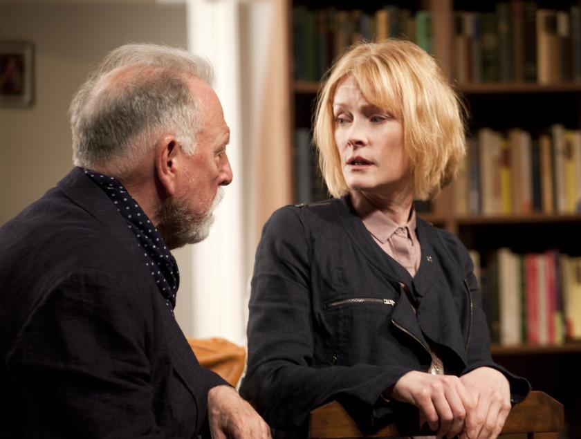 Kenneth Cranham’s André is a strong, bear-like figure whose authority is visibly leaching away. He can, perhaps in his own mind, be charming to attractive women; he can be rational. But he can also be violent. Paranoid. Crazy. And he can imagine suffering violence. It’s an uncomfortable performance, brilliant in its understanding and its detail. Similarly, Claire Skinner is a woman holding it together, but only just; any worsening of her father’s condition could simply blow her away. She is everywoman worried about her father. Both (pictured above) are well supported by Nicholas Gleaves as Pierre, Kirsty Oswald as a care-worker, plus Jim Sturgeon and Rebecca Charles in the other fragmentary roles. Despite its moments of unexpected humour, this is a sobering evening of cold comfort to anyone who is afraid of growing old.