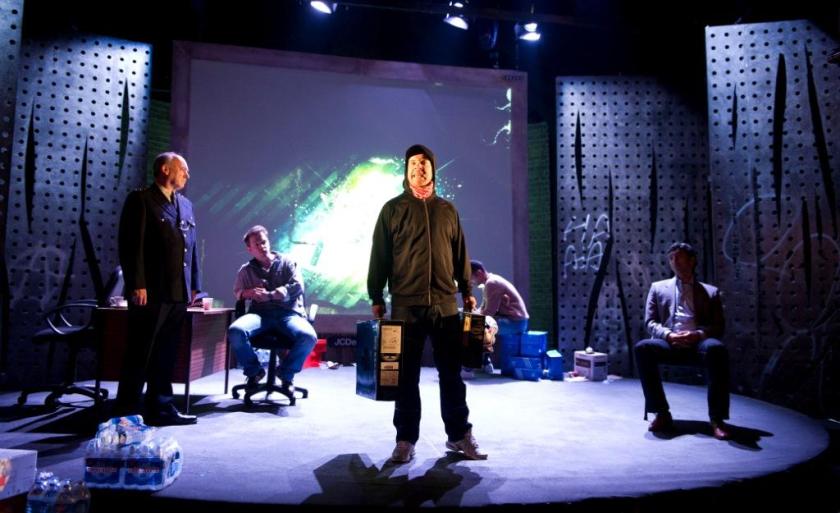 When Nicolas Kent, the departing director of the Tricycle, wanted to run a verbatim piece [documentary theatre made using only the words of interviewees] on the English Riots he came to me because we’d previously worked on a verbatim play in 2004 about Guantanamo Bay [Guantanamo: Honor Bound to Defend Freedom (pictured below left)] and he knew it’s something I’d want to do. My interest in this subject may partly be a product of my upbringing in South Africa [Slovo’s parents were very active in the anti-apartheid movement] because in my family it was made clear that the politics of the country I lived in affected our everyday lives. I appreciate that what happens to other members of society has an impact on what happens to you. In my novels I’ve always written about people who are caught up in bigger politics; the impact on the individual of what’s happening in the wider world.