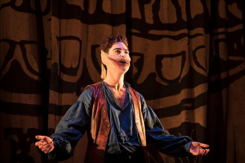 The storytelling itself in Kneehigh veteran Carl Grose's book relies on flashbacks, reversals of character, puppet shows-within-puppet shows and occasional clamberings into the audience to arrive at the solution of the mystery that drives the piece: how Grinpayne came by his grievous facial fate, We get storm-tossed seas, forays into high camp, and lots of London-centric jokes (the Royal Palace at Catford, if you please), alongside some fairly dubious royals – spot the Richard III reference! – that include the always-welcome Julie Atherton in vampy form as a stridently spoken queen who against the odds ends up as an agent of healing all her own.