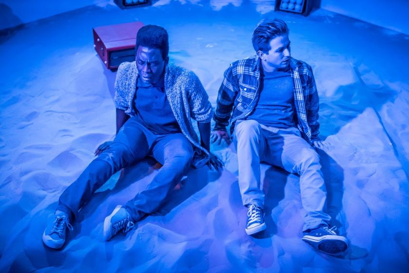 Seymour and designer Newby have reinvented the Finborough’s space as a sort of sandpit, its floor a central square that doubles as a bed for the lovers, and as combat ring for their rapid-fire dialogue. It’s a frenetic experience for all concerned, as McEntire and Huntley fast-forward and -back to convey the play’s timescale as it jumps around (their delivery is equally nimble). Just occasionally you wonder whether a more pronounced modulation of pace would reward through contrast: there’s a late scene in which the two men reencounter one another after a separation of two-and-a-half years which might benefit from an extra degree of awkwardness, rather than just continuation.