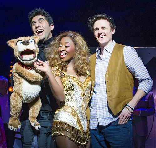 For those that are, I Can’t Sing! is framed behind a monster proscenium arch (designer Es Devlin) promising and delivering a kind of X-Factor heaven where the gods of wannabe pop stars put their hapless playthings through the humiliation of terrible back stories and hard-luck tales, of sick siblings and deceased grandparents. There are those we might recognise - for Wagner read Vladimir, for Jedward read Altarboyz - there’s a plumber with a ukelele called Max (likeable Alan Morrissey), there’s a smoking hot black girl who doesn’t know it (the fabulous Cynthia Erivo), and then there’s a Hunchback (Charlie Baker) who’s cast out with the suggestion that Embarrassing Bodies might be more his kind of show but refuses to go quietly. Nobody goes quietly in this musical. (Pictured above right, Simon Lipkin, Cynthia Erivo and Alan Morrissey)