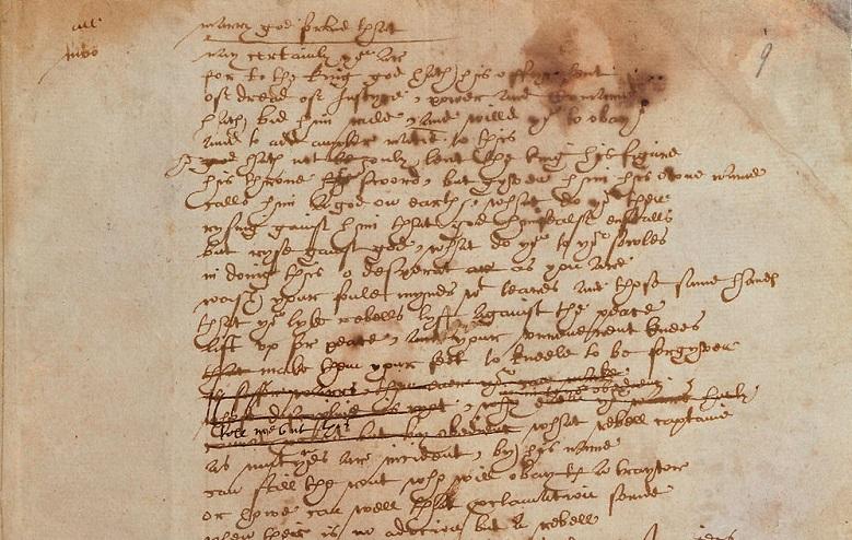 The play had already been refused permission for staging, unless major revisions were undertaken: “Leave out the insurrection wholly”, wrote Master of the Revels Edmund Tilney on the manuscript, “with the cause thereof, and begin with Sir Thomas More at the Mayor’s sessions with a report afterwards of his good service done, being Sheriff of London, upon a mutiny against the Lombards only by a short report and not otherwise, at your own peril.” As far as we know, even with the revisions, the play was never staged. Shakespeare’s scene remained unknown for two centuries. By good fortune, the prompter’s master-copy – known as the “book” – was preserved and later rediscovered. The inserted scene, in the original holograph that scholars call “Hand D”, is the only surviving example of a working manuscript in Shakespeare’s hand. Now held in the British Library in London, these three pages are among the most precious literary documents in the world.