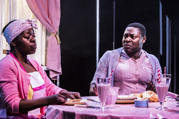 Hugely long, at more than three hours, with a half-hour interval in which the scaffold staging is changed from traverse to end-on, Max Barton’s production – designed by Shawn Soh – successfully uses a cast of nine to play more than 50 characters. If the director occasionally struggles for perfect clarity, the general effect of Karagula is to blow you away with its unique voice and massive ambition. A co-production with the Soho Theatre, this is a totally immersive mythological experience that is both amazing and exhilarating, with good performances by Theo Solomon (Dean) and Emily Forbes (Libby), plus Lanre Malaolu, Obi Abili and Lynette Clark (both pictured above) to name but a handful of the hardworking and versatile cast. Great stuff! And this may well be my theatre event of the year!