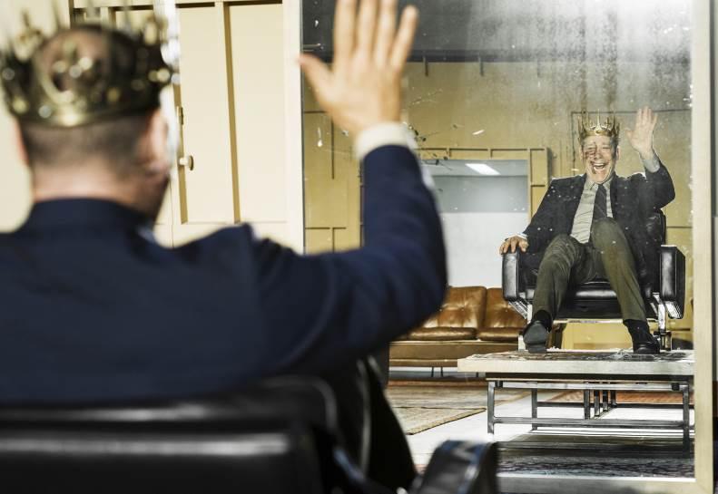 As Richard of York takes loping, morose centre stage the intensity levels are pointedly turned down for a while, punctuated only by the odd, minimally done murder. There's even deft comedy from Aus Greidanus's Buckingham - his only ally, as the same actor was playing honourable Gloucester to Henry VI, now turning in a brilliant sketch of opportunistic insouciance that turns sour. Since we see the lugubrious, birth-marked shambler and king-in-waiting as persuasive, low-key orator in his wooing of Lady Anne, we shouldn't be surprised when he breaks away from his melancholy addresses to a large mirror and the actor in him runs riot. Phone calls to Obama, Merkel and Putin - the only interjected text, apart from a sung Wilfred Owen poem in the first part - are only a prelude to a breathtaking, bonkers display of imagined kingship.