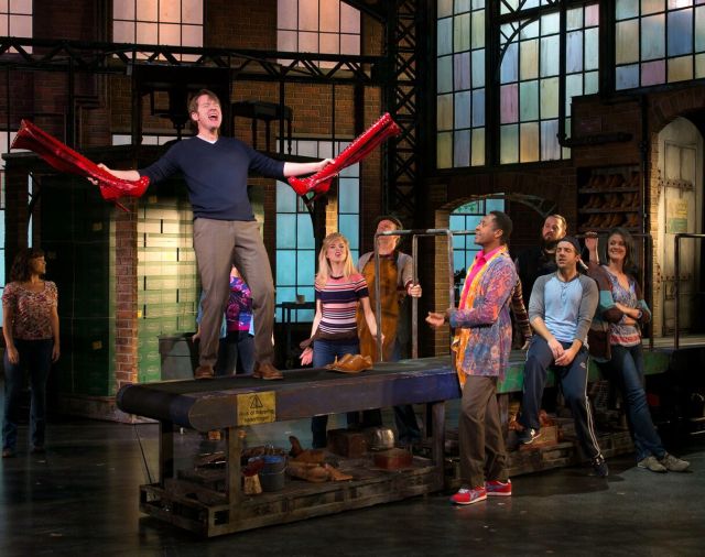 Matt Henry's Lola (pictured above) presents that exotic mix of soulful and masculine vocal tones with an extravagant and queenly manner. The Voice finalist absolutely nails the moment Lola (aka onetime boxer Simon) arrives for work at Charlie's shoe factory neatly restored to his male self in a dapper, immaculately-fitting suit. Suddenly, he's a little out of place and out of sorts, just as the show's musical soundtrack sometimes is. And yet, Lauper at her best is far from predictable. "The History of Wrong Guys" gives the terrifically talented Amy Lennox, playing factory worker Lauren, a peach of a showstopper as girl-with-a-crush collides with girl-with-a-past in all its face-pulling embarrassment. Funny girl indeed.