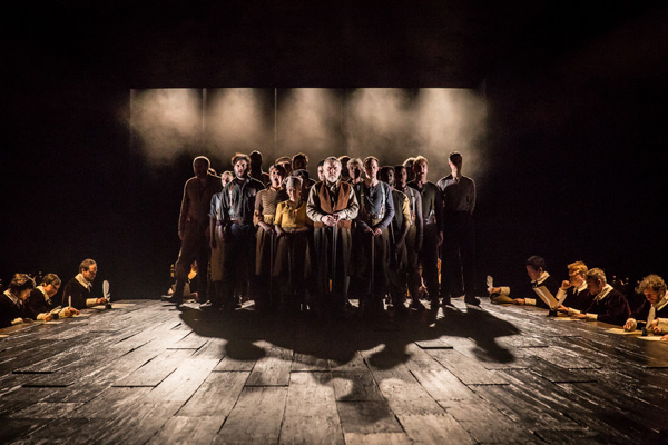Turner’s staging, beautifully designed by Es Devlin, features an enormous oak table, at which the rich gentry and churchmen feast at the start of the play but are usurped by parliamentarian lawyers and scribes by the end (the privileged winners writing history). From a huge cast (pictured above), I liked Sargon Yelda (Rainborough), Steffan Rhodri (Sexby), Daniel Flynn (Cromwell), Leo Bill (Ireton), Joshua James and Trystan Gravelle. Alan Williams plays a variety of down and outs. Elizabeth Chan and Ann Ogbomo suffer the agonies of poverty. This drama of ideas also, occasionally, engages the emotions.