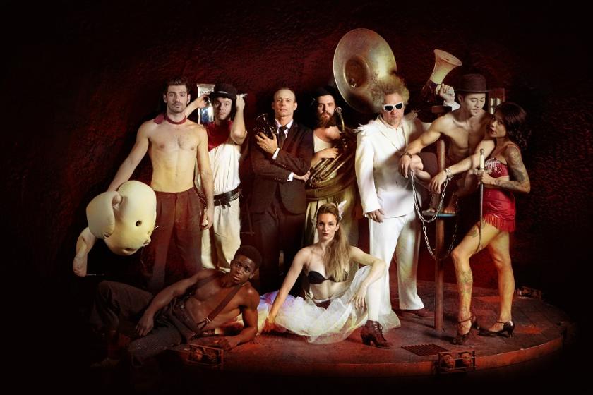 Any thoughts that this might be a traditional circus entertainment are swiftly postponed as, onto a raised circular stage, enters froth-maned MC Sxip Shirey growling breathy school-of-Tom-Waits nothings into a mouth organ with the help of a sousaphonist and a handheld police siren. As the three musicians retreat upstage, a man in a nine-to-five suit, apparently under hypnosis, is summoned from the audience. That idea that it could be one of us up there soon recedes as, apparently inveterbrate, Jonathan Nosan proceeds to tie himself in serpentine knots. Contortionism being a marmite skill – you either love it or find it creepy as hell - this doesn't feel like an inclusive opener.