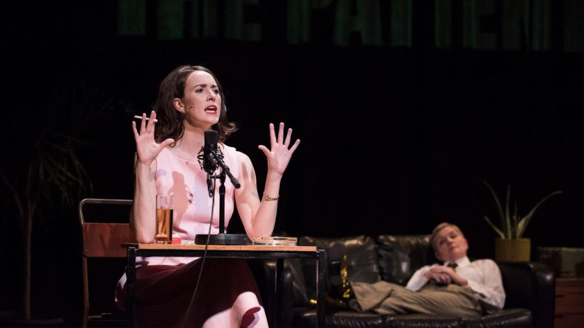 But The Patient Gloria is much more than a straightforward re-telling of an intriguing series of events. It interweaves the personal tales of the actors, particularly the excellent Gina Moxley, who wrote the play. This fluidity of character and scene blurs the boundaries between actuality and a constructed set-up, cleverly paralleling Gloria's situation. Seeing a female play the roles of the male psychologists Carl Rogers, Fritz Perls and Albert Ellis creates a psychologically safe space that cushions the appalling reality not only of what happened to Gloria, but others who fell prey to the unforgiveable behaviour of men in a similar position of power. Liv O’Donoghue perfectly captures the spirit of rebellious questioner, and Jane Deasy is gloriously wry, sitting casually in the background directing, advising, and occasionally singing accompaniments such as “You made my shit list” and “Dick on the bus”.