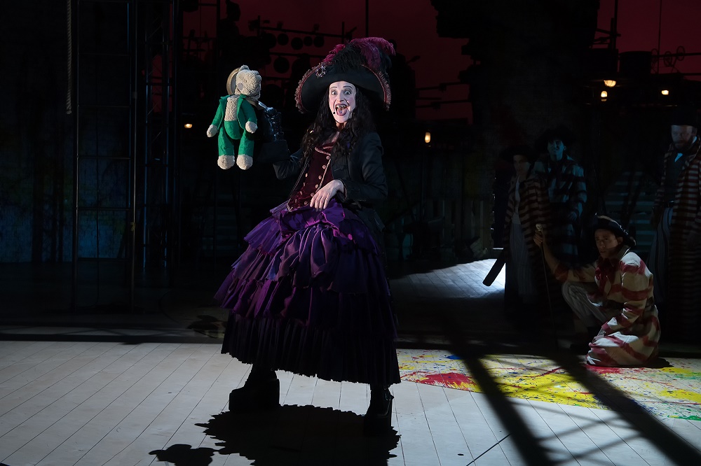 Cookson and her versatile ensemble demonstrate that showing us the harnesses ("fairy strings") which enable Peter and Wendy to fly doesn't detract at all from the magic if the actors seem genuinely thrilled by the experience; it merely adds an extra dimension of fun. Pirates wield cricket bats and lacrosse sticks; Captain Hook - looking vulnerable - is helped by Smee, in full view, into her wig and purple crinoline (pictured above: Anna Francolini as Hook).