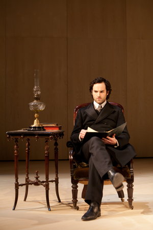 In the Russian provinces of the 1890s we find Misail (Nicholas Shaw, pictured below), the son of a wealthy municipal architect (a builder of houses with “hard, stubborn expressions”), struggling with his conscience. Born to a life of respectable duty and privilege he yearns for a worker’s struggle, for an end to the hypocrisy of a bourgeois society that has “freed the peasants but enslaved the worker”. Together with his sister Cleopatra (Sara Lloyd-Gregory) and wife Maria (Alex Clatworthy) he attempts social and political rebellion and tries to find a way to live a life that marries principle and practice.