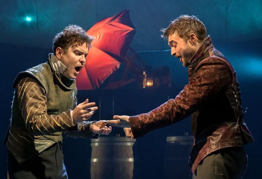 One could make a case for a slightly recessive Rosencrantz given the character's own self-appraisal as a support act of sorts, who looks on inquisitively and open-faced as Guiildernstern charges forward, the one urging happiness as the other furrows his brow and embraces the dark that lies in wait for us all. As before, one can't help but feel Stoppard's rhetorical brio springing from the sort of late-night philosophical jam sessions that are part of youth, the writer having gone on to fold intimations of mortality far more rendingly into, amongst other works, Arcadia, where the precocious Thomasina pierces to the elemental quick in a way unavailable to the characters here. His brow creased as if in obeisance to concerns bigger than himself, McGuire has an urgency that powers the play forward, next to which Radcliffe sometimes seems to be racing to keep up. (That may explain, too, why Radcliffe zooms his way through his lines.)