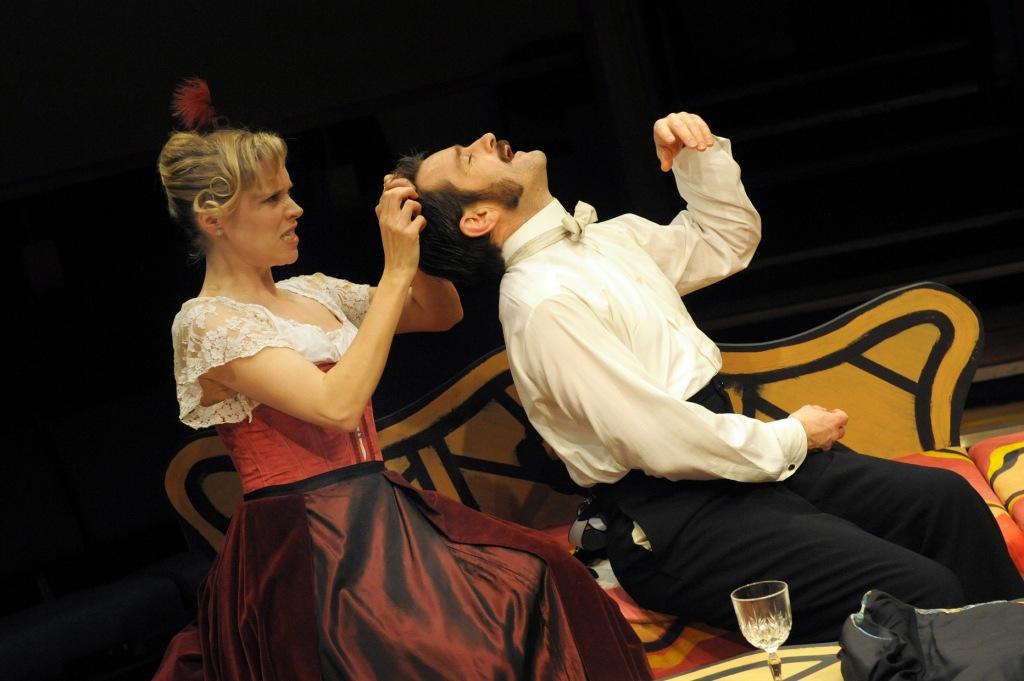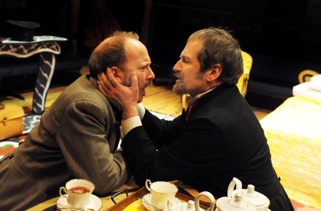 It does not come as much of a surprise when Heidi, a melodramatic German (played with aplomb by Rebecca Egan), appears and it becomes clear they once had a fling. Despite them both being married, she wants to resume the relationship – or else she will kill herself and set her husband after Vatelin (Stuart Fox, pictured right with Jonathan Tafler's Soldignac). In a dazzlingly complicated plot, that fits together like a spinning Rubik's Cube, Lucienne and Pontagnac's wife try to expose their husbands' indiscretions. If they succeed, they will take revenge by having affairs themselves: what's sauce for the goose is sauce for the gander. Hoping that he will be Lucienne's prize, Pontagnac is keen to help with a doomed idea involving doorbells and mattresses.