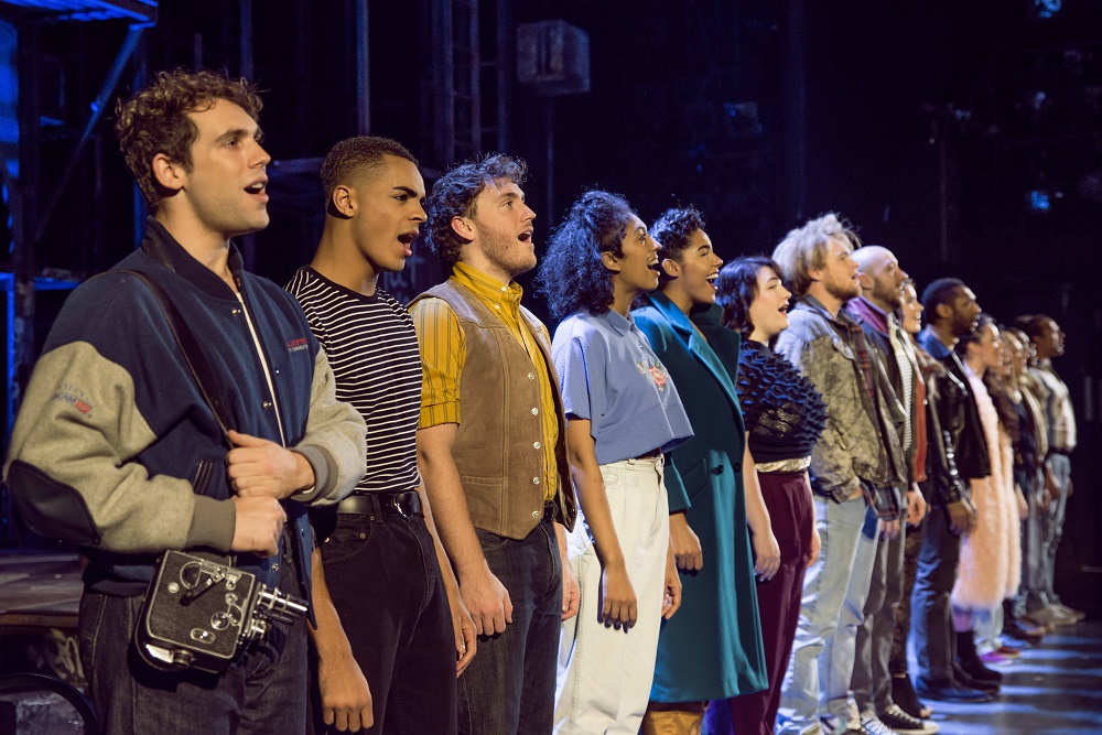 The first public performance of Rent was postponed in favour of a private recital for friends and family. When the show opened for business, New York's crack troop of make-or-break critics praised it to the heavens. Comparisons were invoked with other mouldbreaking shows - Hair, the hit musical for the flower people, and A Chorus Line, with which it shares one striking motif. For one of the key songs, the entire cast lines up downstage in a face-off with the audience. (Pictured below: the 20th anniversary touring cast of Rent)
