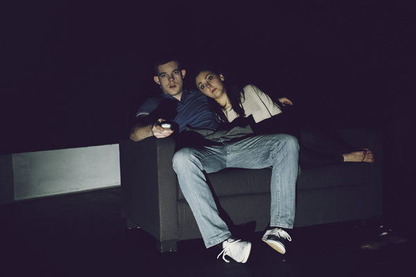 The second half of the play is a flashback to earlier in the day. Before he prepares to go out, Adam spends his time with Ruth, the young woman he’s living with. They go to a local supermarket, then they eat a salad, and then they watch some telly. She irons his shirt for the evening (shades of Alison in John Osborne’s Look Back in Anger). We see how they met as students, get a glimpse of their domestic routine, and even see an argument which shows how scared she is of him.