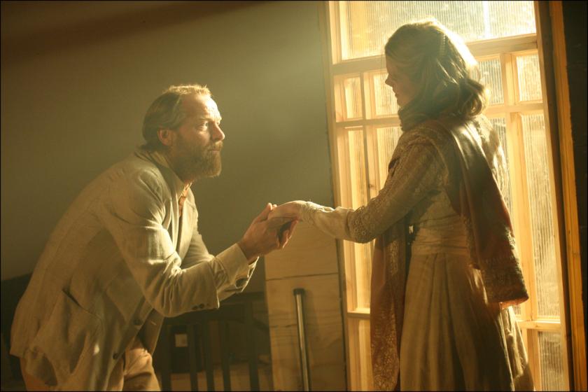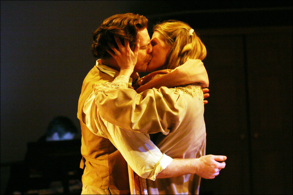 While neither the love stories nor the social commentary are neglected, Bailey’s Uncle Vanya is foremost a tale of men – of male friendship and enmity. William Houston’s Astrov (pictured right with Lucinda Millward as Yelena) is a physical force on stage, all restless wit and misguided passion, and it is his fractious devotion to Vanya (Iain Glen) that anchors the relationships with Sonya and Yelena – this latter rather more substantial than usual thanks to Houston’s forceful courtship.
