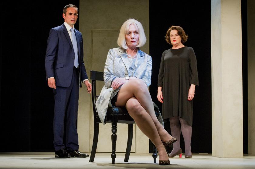 This entertainment’s title refers to the Labour leader, Jeremy Corbyn, who is MP for Islington North, and the short pieces by some of our most political playwrights comprise premieres by Alistair Beaton and David Hare, plus previously staged pieces by Mark Ravenhill, Stella Feehily and Caryl Churchill. First up is The Mother by Mark Ravenhill (pictured below), which was originally part of his 2008 Shoot/Get Treasure/Repeat epic, and it shows two army officers paying a visit to a depressed and aggressively foul-mouthed mother to tell her that her son had died in action. Although it mocks the language of military bureaucracy, and has a couple of moments of tenderness and pain, its dark humour is also at the expense of a working-class woman. Not very funny.