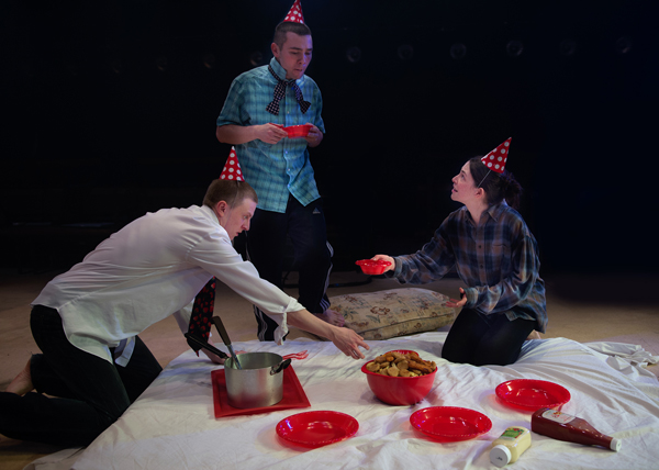 The acting is uniformly impressive, from Alex Austin’s downcast and deeply damaged Hench to Jake Davies’s manic but fragile Bobbie; and from Annes Elwy’s Jenny (pictured above with Austin and Davies), whose willingness to heal is in sharp contrast to Sian Breckin’s Maggie, who seems quite capable of wrecking everything. Everyone is convincing and moving. What’s beautiful here is not the tawdry tale so much as the humane balance of hope and hopelessness, love and lovelessness, in a place where pain is deeply expressive and tenderness can be as disfiguring as violence. Exceptional. I now long to see more plays from Jordan’s pen.