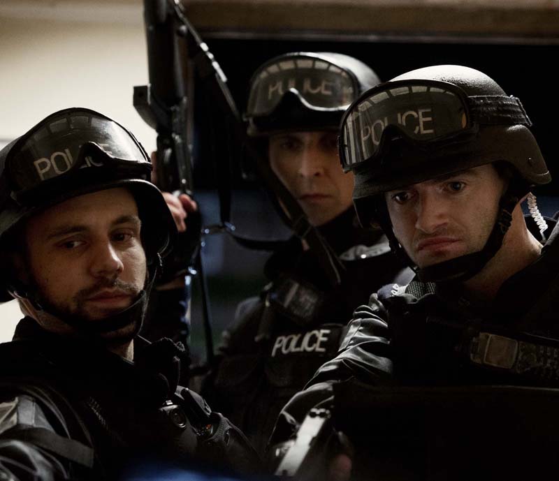 Despite all that, the worst crime on display hasn't been committed by the deranged killer carrying out drive-by shootings around West London, it's the utter detestability of almost every character in the cast. The front-line officers are all depicted as brutish ignoramuses, oblivious to any notions of "policing by consent" and concerned only with being as objectionable as possible to the public while earning wads of overtime. Especially irksome is the hysterically aggressive Robbie (Adam Deacon), who has the brain of a six-year-old trapped inside the body of an idiot. The special armed police unit (pictured above) just think they should find somebody to shoot, because they're armed police.