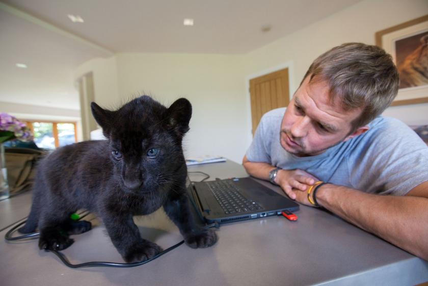 Back to Maya. The cub is black, a rare genetic variation: the black jaguars, six percent of the population, are known as panthers. Hand-raising big cats is controversial, as some think it leads to adult behavioural problems. On the other hand, neglected or abandoned feline cubs die very quickly. The care Maya needs is phenomenal: Giles has to get the five-day-old on a bottle as soon as possible. Her special milk does not have lactose, which is harmful to carnivores. She also has to build a bond with humans. His third attempt to feed the cub is successful: Maya has to drink 20 percent of her body weight a day, so she has eight feeds her first night. Feeding every two hours is followed by careful weaning onto meat paste, and even emulation of the ways in which her real mother would have stimulated her cub’s defecation (fear not, the human does not lick Maya’s bottom, but rubs it with warm cotton wool).