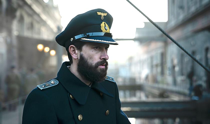 Meanwhile, the father-and-son theme is echoed by the continuing story of Hoffman (Rick Okon) and his venerable dad Wilhelm (Ernst Stotzner), a legendary submariner from the previous war whose book Don’t Fear the Depths has become a bible of undersea warfare among the sailors of the Kriegsmarine. His son’s moral anguish about the war and the Nazi cause is another issue waiting to bounce back strongly in this third series. Back, too, is Gestapo official Hagen Forster (the reliably chilling Tom Wlaschiha, pictured above), whom we meet again when he visits Lisbon to investigate the killing of a Gestapo agent. He’s about to unearth a (spoiler alert) vast conspiracy involving plundered gold.