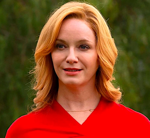 Deborah’s Late Night quest provides the spine for the season, and Smart’s mercurial, multi-layered and sometimes scary performance remains a thing of wonder. There’s plenty of hilarious and bizarre scenery along the way. Among many highlights is a weekend at a swanky resort where the American Television Affiliates Golf Tournament is being held (Hacks excels at spotlighting the corporate self-importance of its chosen industry). Here, it seems that Deborah’s quest to get the Late Night gig is fatally derailed, but this prompts her into putting on an epic display of pro-style power golf. Network supremo and golf fanatic Bob Lipka (Tony Goldwyn) is vastly impressed, with results that Deborah herself can scarcely have foreseen. Meanwhile, Ava has a bizarre encounter with Christina Hendricks’s character (billed as “Gay Republican”), who makes Ava an obscene offer she can’t accept (Hendricks pictured below).