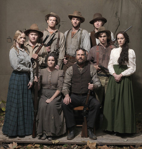 His opposite number, Randall McCoy, is played by Bill Paxton (pictured above), who I would never have accused of being over-burdened with raw acting ability. But, now older and grizzlier, he's more than plausible as a man clinging desperately to what he regards as his rightful share of land and position, but unable to see any alternative to dogged confrontation. It's as if the two protagonists and their straggling tribes are labouring under some Old Testament curse which, judging by the way it's going, will not permit anyone to get out alive (the McCoy clan gathers, pictured below).