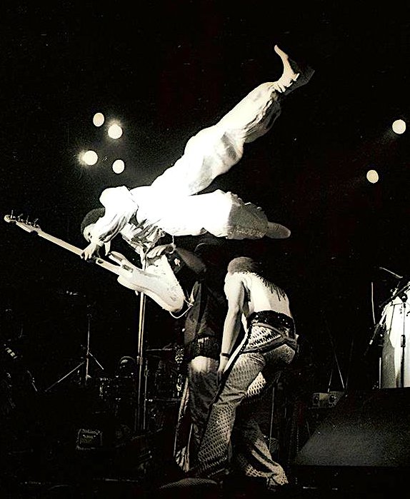 As for the Rolling Stones, they displayed typical financial wiliness by spending the minimum on effects which nonetheless did the job (eg Mick Jagger swinging out over the audience on a common-or-garden rope, or gyrating on a large but very cheap plastic phallus). Anderson recalled the days when Jethro Tull and Led Zeppelin toured together and got by with a combined road crew of four, which enabled them to turn a tidy profit. Once Zeppelin hired a private airliner and accumulated a huge entourage, they were to all intents and purposes igniting giant bonfires of tenners.