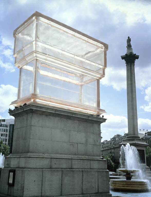 Soon after, Whiteread was invited to create a holocaust memorial for Judenplatz in Vienna. Concrete casts of hundreds of books created an impenetrable library; but the design provoked opposition both from the far right and the Jewish community, and it took five years of wrangling before the sculpture was completed. “I never intended to become an artist that made public monuments; it just happened that way,” Whiteread remarked ruefully. “You have to be emotionally equipped to do something like that. It takes a lot out of you and can leave big scars.” Not surprisingly, when she created a sculpture for the fourth plinth in Trafalgar Square in 2001 (pictured below), it was resolutely devoid of content. A resin cast of the empty plinth, it questioned what or whom we might collectively agree to celebrate.