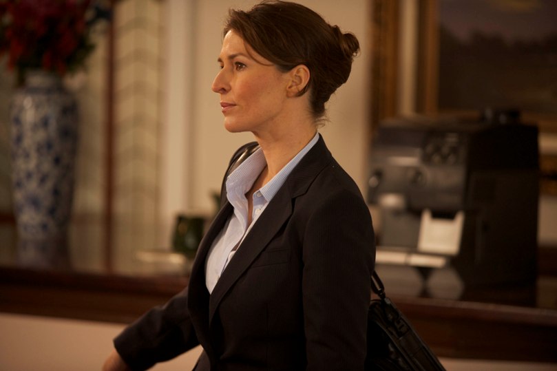 In this instalment he had just wrapped up a deal releasing 10 hostages in a crowded Srinagar when at the nervous hand-over bullets flew, the chief kidnapper was shot dead. In the ensuing melee a young couple ran off with one of the kidnappees while Trevor Eve belied his years to give hearty chase, only for the fleeing party to board a holiday bus full of British character actors playing tourists. All this in about two minutes. In any such situation King does what hostage negotiators do: he hit the phones, and there he stayed for most of the rest of the hour. Among his communicants were his female assistant, his female colleague (Helen Baxendale, pictured below), the female kidnapper, two female kidnappees. Trevor Eve prefers hanging with the ladeez. He even found time in a tense negotiation to take a call from his female ex-wife (Natasha Little) to finalise the details of his divorce.