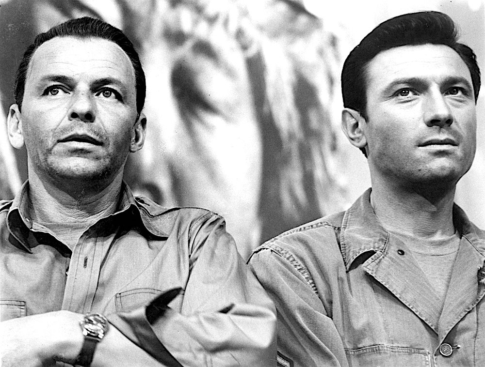 The spy novel dates from the late 19th century, with the growth of the organised security and spy agencies on the part of the nation state; in filmic form from the 1920s. The genre plays on paradox and fear and feeds on fantasies, as explored by Hitchcock in Notorious or North by Northwest. Even the theme songs are inescapable. The famous ones from the Bond films can become permanent earworms. Paranoia is a habitual ingredient, and the real world affects the fictional. In the 1960s and 1970s there was the Cold War, Vietnam, the Kennedy assassinations and Watergate – and The Manchurian Candidate with Frank Sinatra (pictured above with Laurence Harvey). The possibilities of nuclear Armageddon inspired such films as Kiss Me Deadly, to name but one.