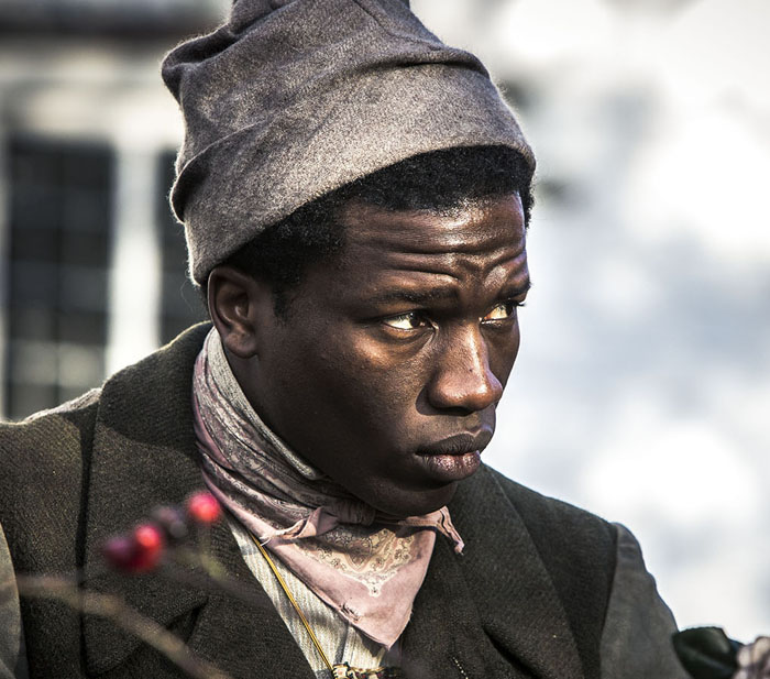 Often, writer John Fay hardly seemed to bother with the "drama" part at all, as his screenplay lapsed into indigestible lumps of didacticism. This opening episode was a sustained campaign against the evils of capitalism, the Poor Law and the Corn Laws, and almost every line was a polemical announcement, like a slogan on an old Soviet poster. On the potential evils of mechanisation and its capacity to throw workers into poverty, we were told (by the union organiser and inventor Daniel Bate): "Machinery isn't the enemy here! It'll improve our lives when it's used properly." Wage cuts at the mill? "Blame the Corn Laws," said the overseer. "It's them that's strangling trade." And when Peter, the freed slave (played by Sope Dirisu, below), said the mill-workers' struggle wasn't his fight, Bates told him: "It's all our fight! We're ruled by the rich and they look after their own interests!"