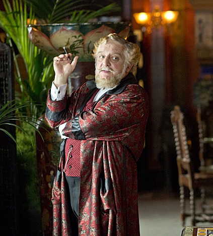 What else was there for it but a visit to that stygian vault where "the resurrection men ply their trade," as Sir Malcolm sonorously put it. Down among the city's nocturnal corpse-gatherers, they found an intense young anatomist who deftly slit open the vampire, marvelling at the way it had grown a "tensile exoskeleton" like an insect or crustacean. And once he peeled that open, he found Egyptian hieroglyphics tattooed underneath. This was excellent news, since it prompted a trip to the Egyptologist Mr Lyle at the British Museum. He was played by Simon Russell Beale (pictured above) with barely-suppressed hilarity, sporting riotous facial hair, fastidiously fussy clothing and a thespy guttural lisp.