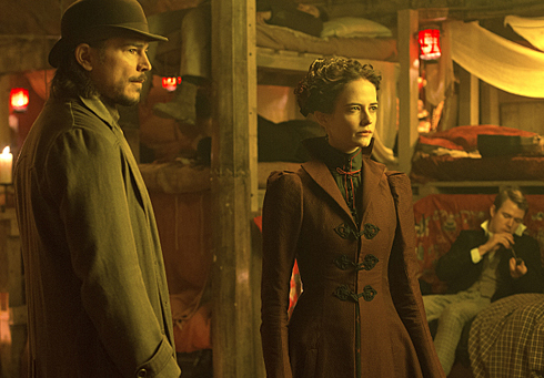 For one thing, the production is plushly upholstered and full of period detail, and having been created by the American Showtime network it relishes cable TV's freedom to provoke and titillate. But mainly it's the cast. Up front we have a mysterious pair of ghoul-hunters, commandingly played by Vanessa Ives (Eva Green) and Sir Malcolm Murray (Timothy Dalton). They're joined by the laconic and laid-back American Ethan Chandler (Josh Hartnett), recruited by the deadly-cool Vanessa after she'd seen him thrilling the crowds at his Wild West Show, where he claimed to be the sole survivor of the Battle of the Little Big Horn. She needed a man accustomed to using firearms for some "night work", as she put it. "Is it murder?" asked Chandler. "Would it matter?" retorted Vanessa (Green and Hartnett pictured above).