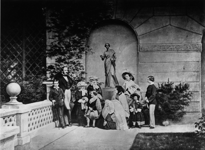 Their mother, we learned, had “a totally insurmountable disgust” for the business of feeding them au naturel. Her breasts, an expert explained, were there for Albert. The recipient of this regal privilege was not popular upon his arrival in England. A satirist with a certain lack of deference commentated on the foreign invasion of the virgin queen: “he entered by Bushey, advanced via Maidenhead, penetrated through Virginia Water and left Staines behind.” Phwoar. Never mind that the whole brood would speak English all their lives with a distinctly Teutonic accent, the royal couple set about establishing their growing family as a beacon of British normality with which the growing middle classes might identify. In this they had help from Winterhalter (see main picture), Landseer and the newfangled photograph (pictured below left), prints of which were disseminated by the royal PRs of the Victorian age.