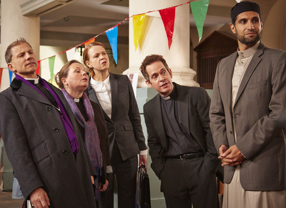 In this series three opener, the Rev Adam Smallbone (Tom Hollander) became a new father, after his wife Alex (Olivia Colman) had very nearly given birth in the back of taxi while the Archdeacon (Simon McBurney) found himself receiving a crash course in DIY gynaecology. Down at the playground in the local park, the Rev Smallbone bumped into the young and dynamic local imam Yussef Hasan (Kayvan Novak). They both agreed that the decrepit recreational facilities were a disgrace, and the imam thought maybe they should do something about it.