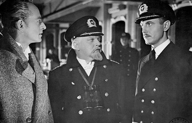 All his wishes were granted, which didn't alter the fact that a curse seemed to loom over the project. When they lugged the model Titanic and truckloads of equipment to a lake near Berlin to shoot the sinking, their efforts were thwarted by appalling weather and technical problems. When the crew moved to the Baltic coast where they'd been given a real live ocean liner, the Cap Arcona, to play with, the shooting schedule was thrown into chaos by incompetent actors and the drunkenness of German servicemen who'd been drafted in to play supporting roles. Selpin launched into a tirade against the German military and the whole Nazi war effort, but was denounced to the authorities in Berlin by his friend and the film's scriptwriter, Walter Zerlett-Olfenius. He was flung into a Gestapo prison cell, where he was found hanged the following morning (bad news reaches the Titanic's bridge, pictured below).
