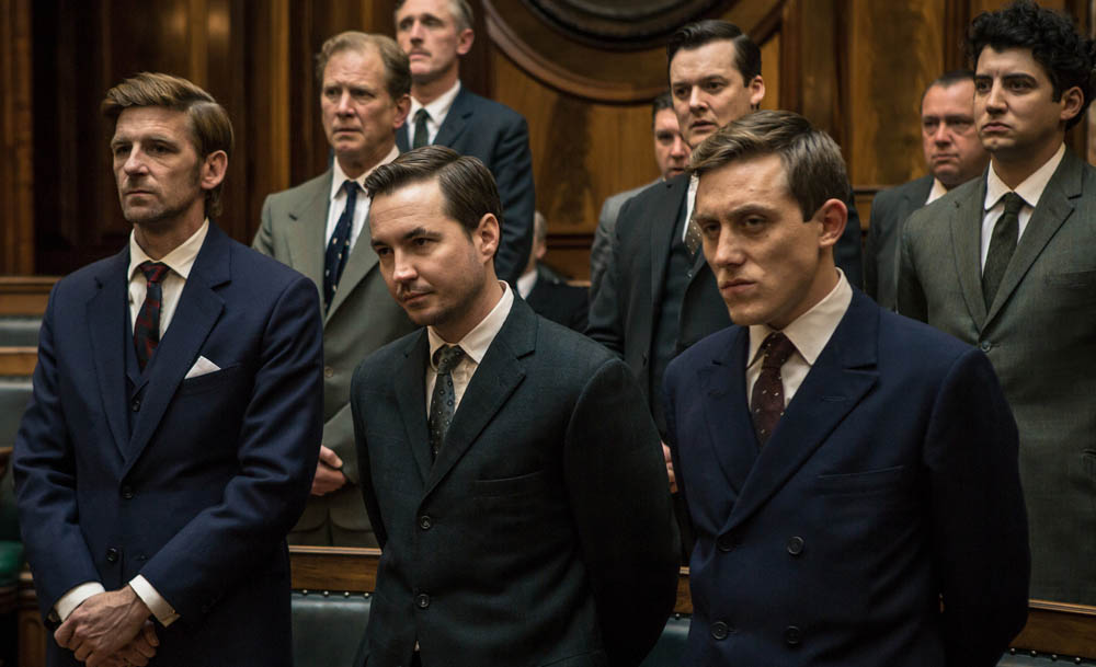 Alongside Broadbent and Evans, the producers were able to assemble an impressive cast including Robert Glenister, Nick Moran, James Fox and Tim Pigott-Smith. Both films have a separate director, with Julian Jarrold telling the story from the robbers’ perspective and James Strong at the helm for the coppers (the train robbers in court, above).