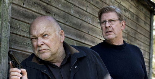 Inevitably, the Swedish cops find themselves putting up with him anyway, as Bergman elbows his way back into the investigation of the killing of a teenaged boy. It just happens to be taking place near the home of Bergman's recently deceased mother, and gruff police chief Torkel Hoglund (Tomas Laustiola, pictured above left with Lassgard) can't help feeling a twinge of sympathy for the rather pitiful Bergman. The history of professionally incestuous relationships within the police department doubtless plays its part.