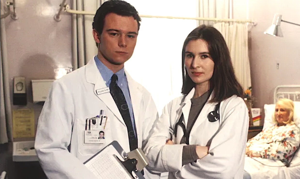 The three most obvious ones that we cover are creating confusion with your writing. Another one is questions of credibility and plausibility, and the third one is boredom, basically creating boring work because of story or character stagnation (pictured below, Andrew Lancel and Helen Baxendale in Cardiac Arrest).
